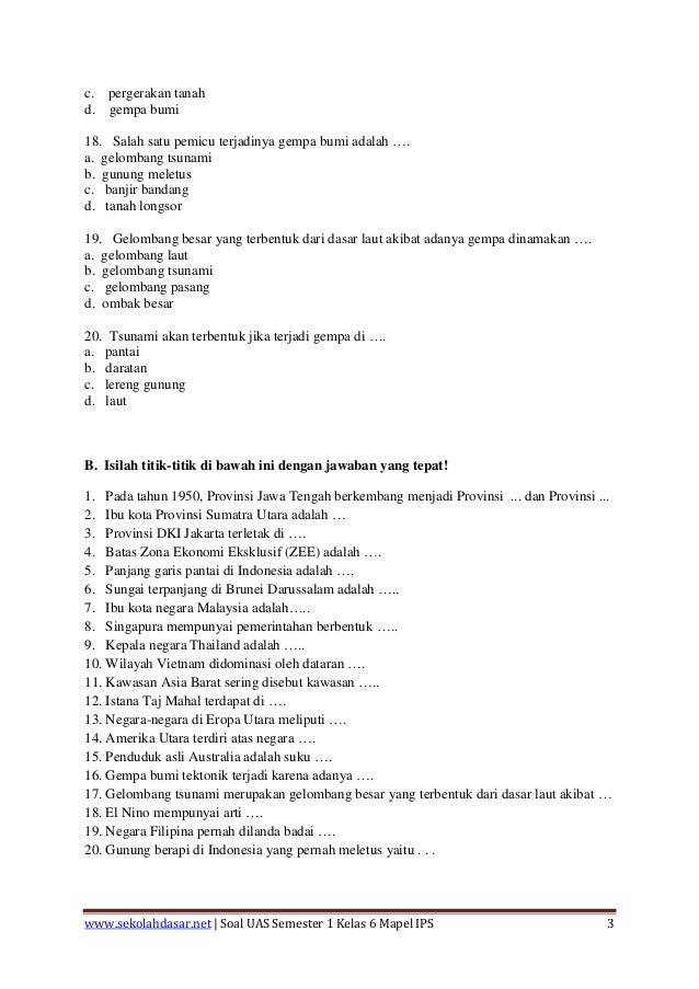 Latihan nama peserta nilai 1. Yang dulunya pas dikenal dengan istilah ulangan semester. Soal uas ips kelas 6 semester genap semoga bermanfaatfull description. Soal uas ips kelas 6 semester 1 tahun 2019. Terima kasih telah mengunjungi blog temukan jawab 2019.